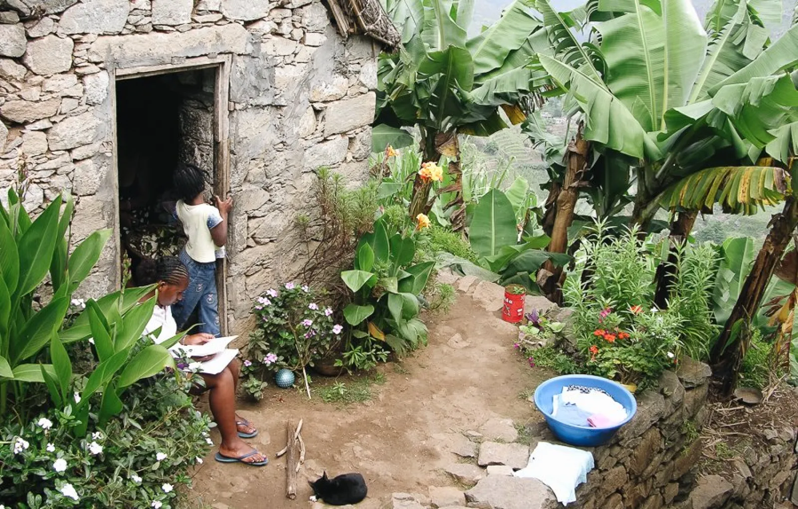Au Cap-Vert, le climat tropical sec et les sols peu fertiles font d’une partie des îles de l’archipel de véritables déserts. Malgré tout, les alizés apportent une courte saison des pluies qui s’étend de fin juillet à début novembre et qui touchent les versants nord des îles les plus montagneuses comme Santo Antão, emplissant alors de nombreux cours d’eau et rendant les vallées verdoyantes. C’est dans ces vallées escarpées que plus de la moitié de la population cultive en terrasse maïs, pommes de terre, patates douces, haricots, ignames et manioc, en grande partie consommés sur place par les habitants de l’île.