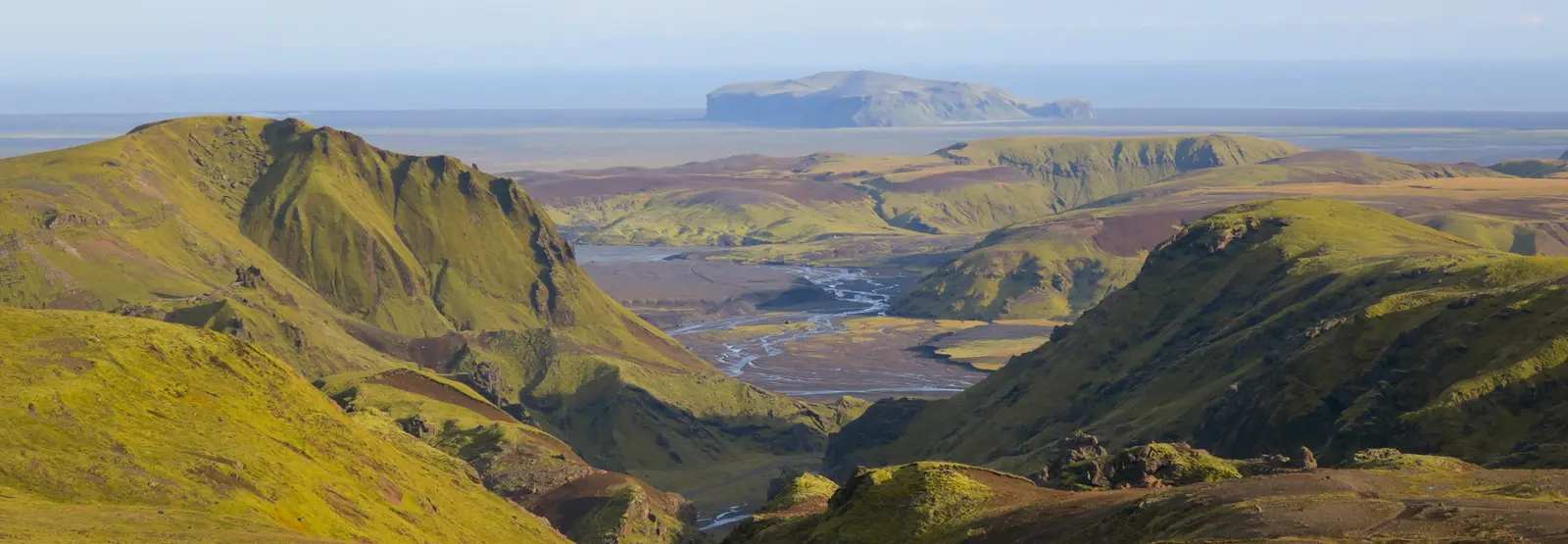 Balade sur un plateau magnifique où la flore affirme enfin ses droits. Bordé d´un massif de bouleaux arctiques qui nous renseigne sur la végétation au moment de sa colonisation par les Vikings, il abrite la magnifique cascade de Svartifoss enfermée dans son écrin d´orgues basaltiques quasi parfaites. Un point de vue aérien sur d'impressionnantes langues glaciaires qui nous encerclent et viennent mourir sur de vastes étendues de sable noir où l'horizon n'a pas de prise.