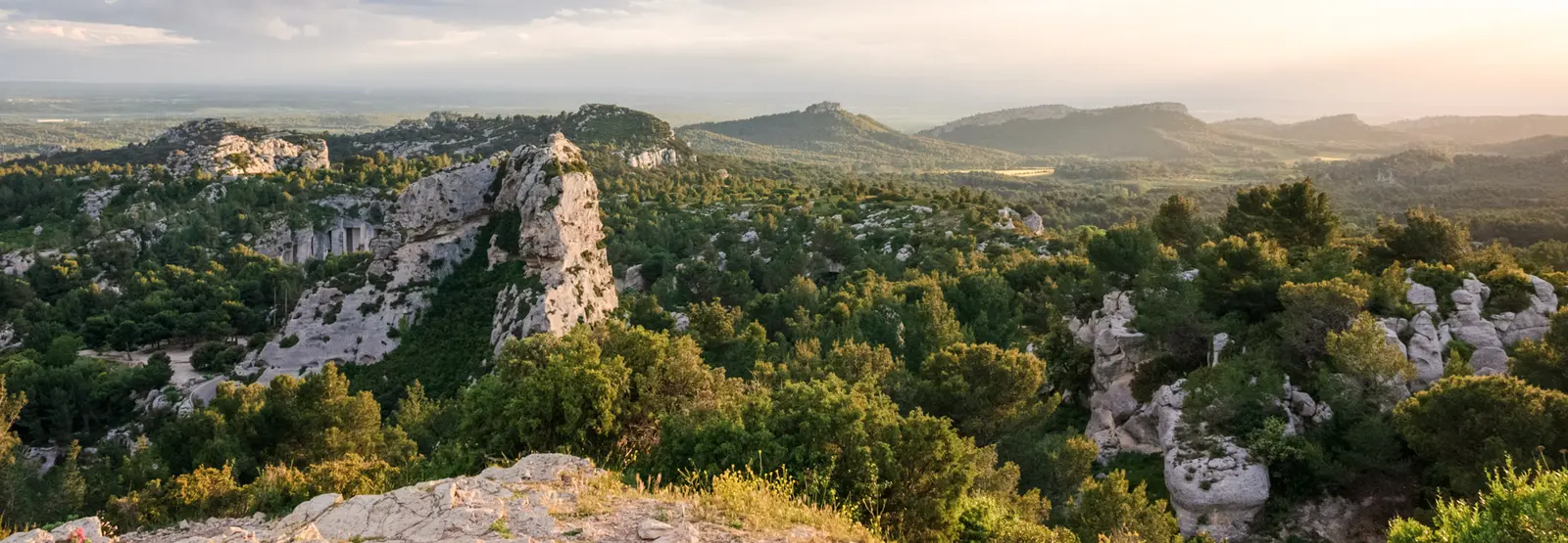Méditerranéen, en général doux en hiver même s'il peut geler quelques fois au cœur de la Provence. Quand le Mistral dégage le ciel, la lumière est exceptionnelle ! Les randonnées se déroulent entre 100 et 350 m d'altitude.