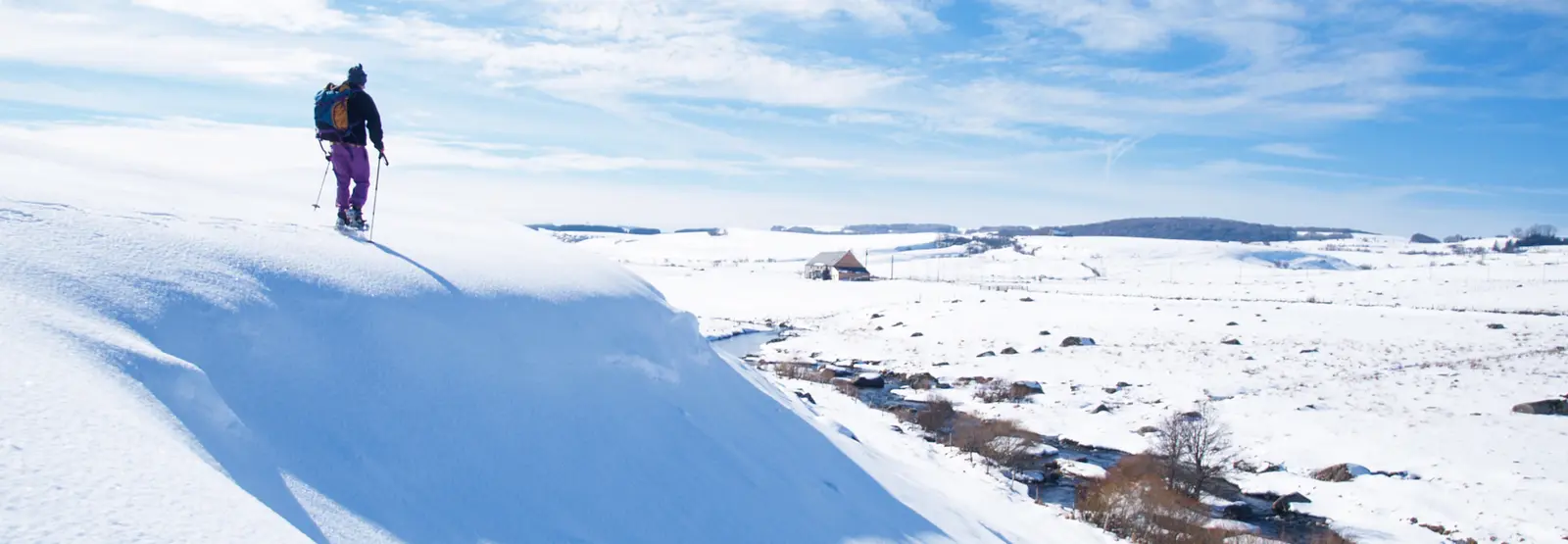 • Les vastes étendues de l'Aubrac en raquettes, une expérience immersive dans la nature enneigée