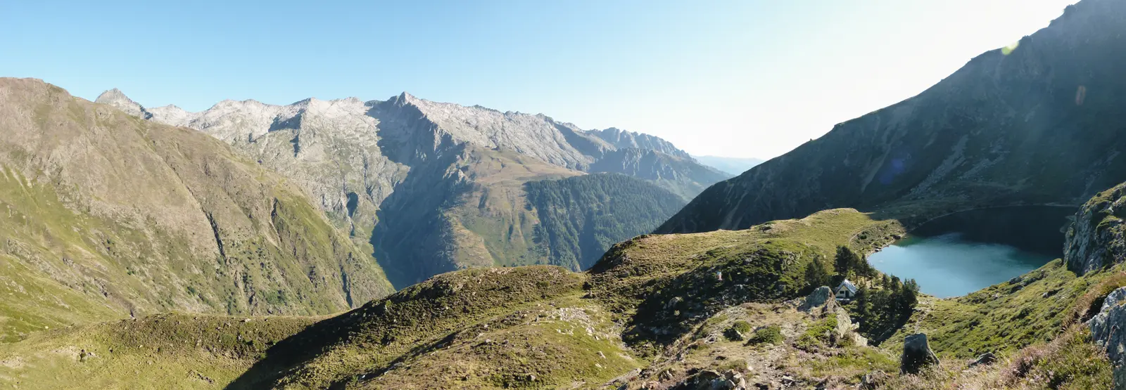 sentier en balcon rejoint le Tour du massif des Trois Seigneurs, franchit le col de la Crouzette pour atteindre
