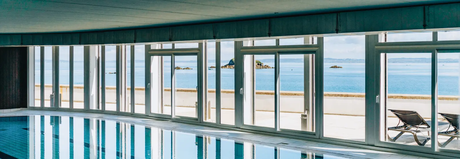 Le centre de thalassothérapie de Douarnenez vous accueille après la randonnée pour les séances de détente et de soins. Le centre est relié directement à l'hôtel par un couloir permettant de ne pas passer par l'extérieur, et donne sur l'océan, la baie de Douarnenez et la plage des Sables Blancs à Tréboul.