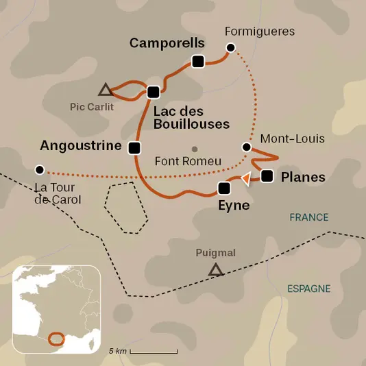 - Le transfert de la gare de Mont-Louis ou Planès le jour 1 si arrivée en train
