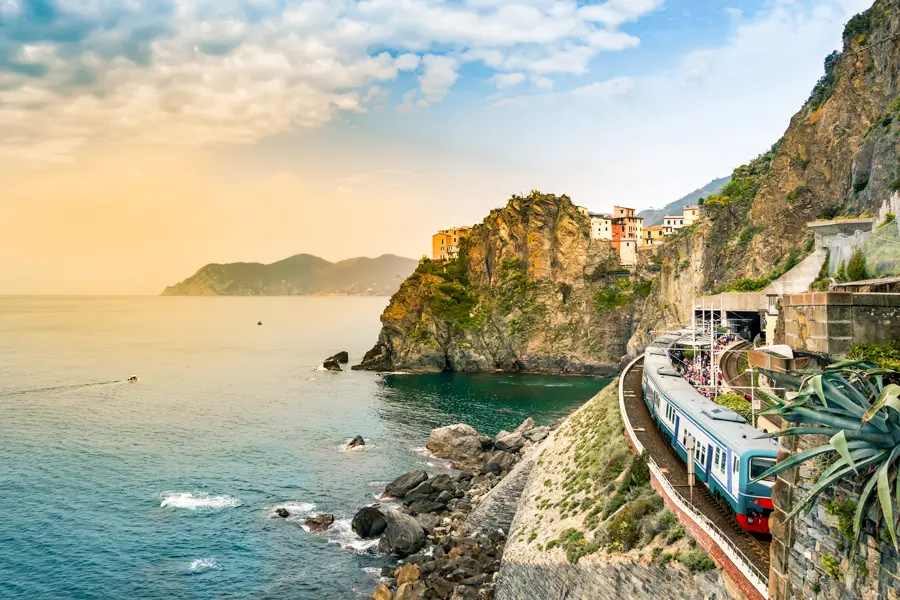 Accès par l'aéroport de Pise ou de Milan, puis train pour La Spezia.