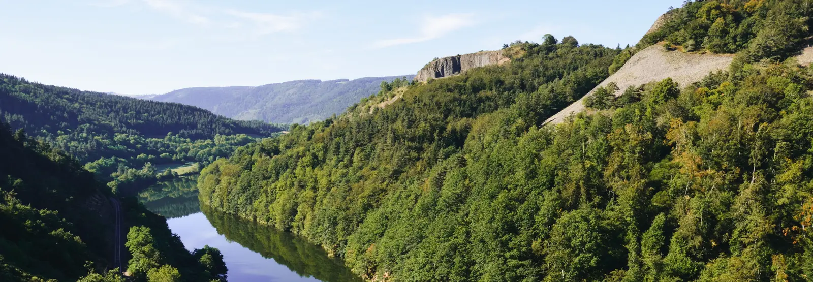 La rivière Allier forme une véritable frontière naturelle entre le granite de la Margeride et les coulées basaltiques du Velay Volcanique, offrant ainsi des paysages aussi spectaculaires que variés.