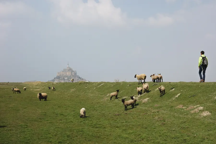 Ultime étape de votre périple sur le sentier des douaniers, le parcours chemine entre polders et herbus, ces grands prés salés aux plantes halophiles broutés par les moutons. Puis la dernière ligne droite vous mène au mythique Mont-Saint-Michel. Nuit extra muros.