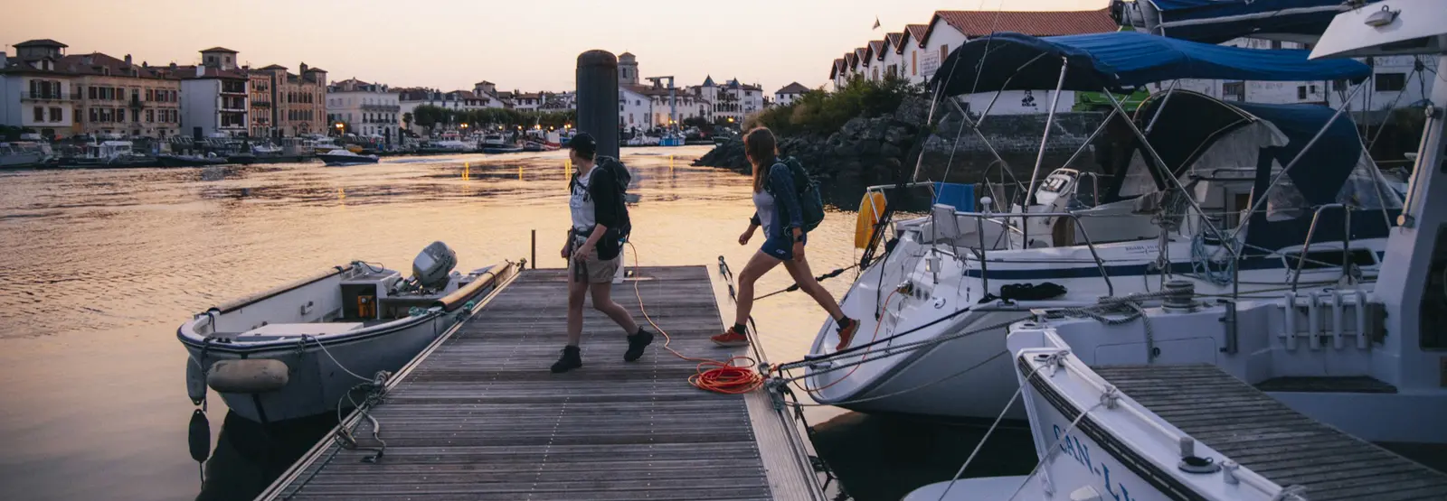 Afin de découvrir ce magnifique mariage des éléments, nous vous proposons une traversée nord-sud faisant étape chaque soir dans un port avec un voilier comme hébergement insolite et itinérant. Accueilli chaque soir par son chef de bord, avec l'océan en toile de fond, vous irez de collines en criques, de falaises en plages, de pelouses en forêts... Côté gastronomie, votre chef de bord vous concoctera le soir de bons petits plats ou vous laissera découvrir les fameuses spécialités culinaires basques : tapas, Txakoli, poissons, axoa...