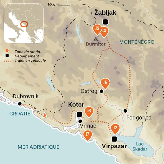 Parcours complet, de la mer à la montagne, avec le superbe parc national du Durmitor