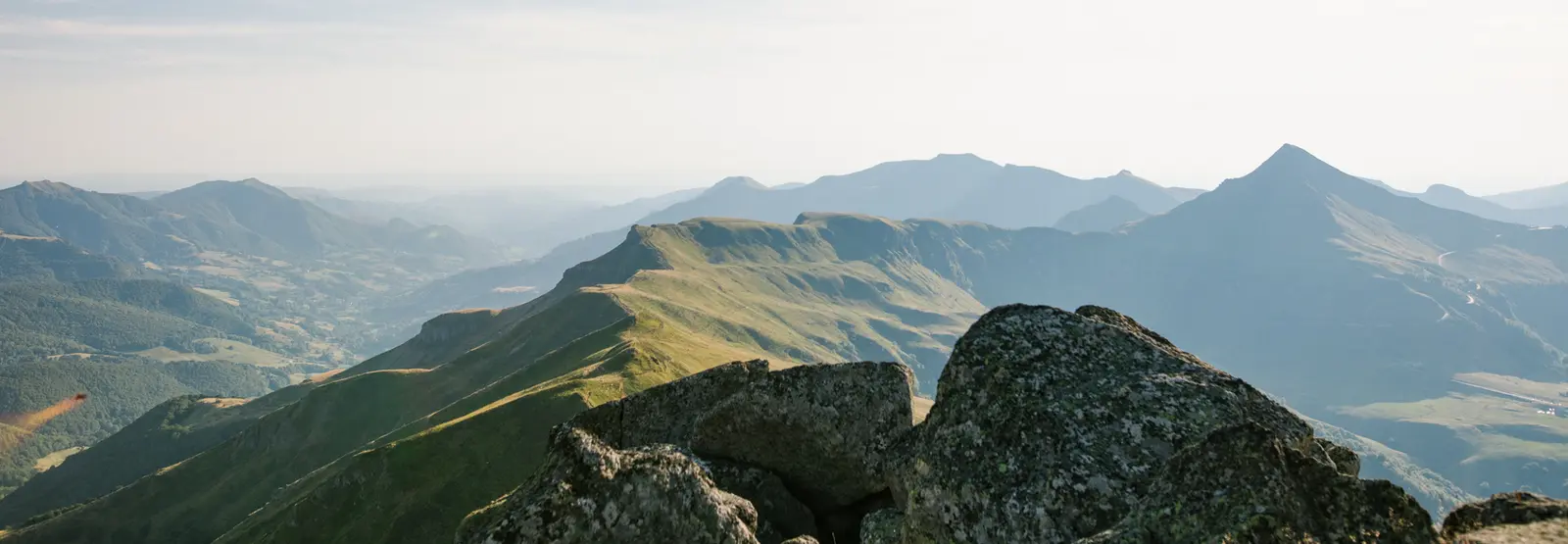 Ensuite parcours en crêtes au dessus de la vallée de la Cère par le Puy Brunet, le Puy de la Cède, le Puy Gros. Descente en fin de journée vers Thiézac par le chaos de Casteltinet.