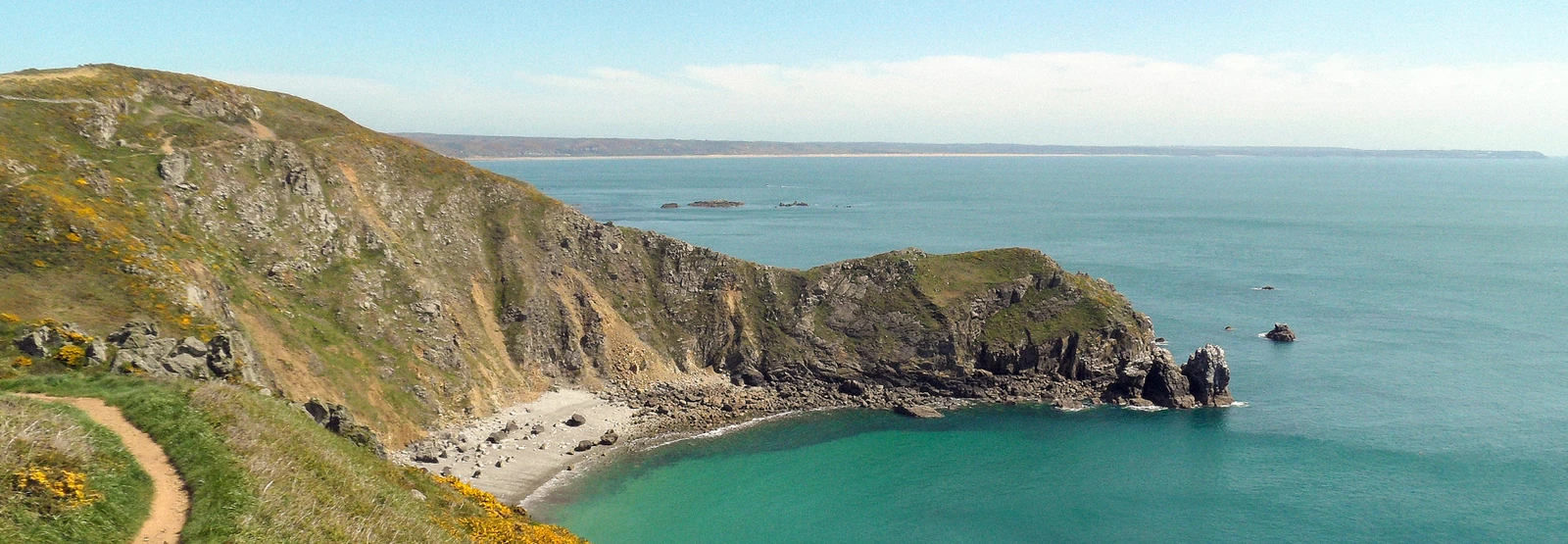 Tout au long de la côte ouest de la presqu'île du Cotentin, juste en face des îles Anglo-Normandes, le sentier littoral réserve de belles surprises ! Du côté de Barneville Carteret, s'étendent de longues plages de sable fin, et par endroit, apparaissent des chaos de dunes à perte de vue. Un peu plus haut, la côte se fait plus déchiquetée et le sentier vous emmène de pointe en pointe, sur cette côte sauvage et agitée. Le nord de la presqu'île est surnommé à juste titre par ses habitants "la Petite Irlande" avec ses parcelles délimitées par des murets de grosses pierres, ses moutons et ses chevaux. Vous serez conquis.