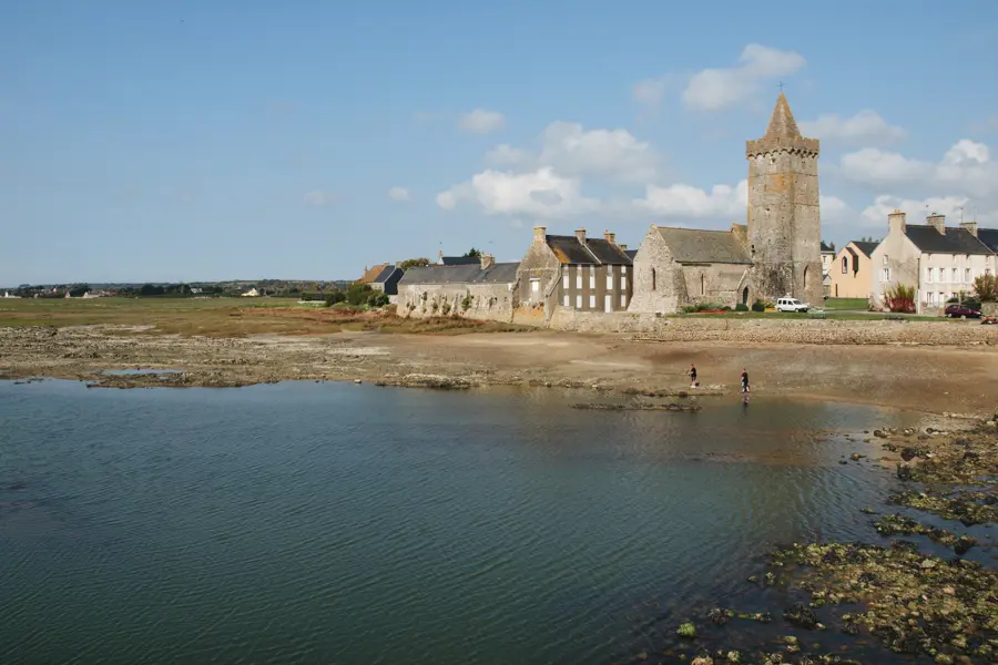 Court trajet en train de Cherbourg à Valognes dans la matinée puis court transfert en taxi pour Lindbergh plage. C'est le point de départ de l'étape. (ATTENTION : prendre tous vos bagages avec vous au départ de Cherbourg). Elle commence par la traversée des dunes de Lindbergh, espace sauvage où il est possible d'apercevoir des lapins. Poursuite par la traversée de Portbail, petit bourg (tous commerces) abritant la très belle église Notre-Dame située au bord du Havre et un baptistère datant du VIe siècle.