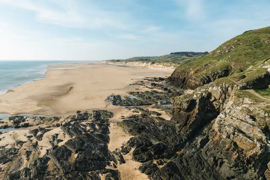 L'itinéraire vous mène ensuite par la côte, voire directement par la plage à marée basse, jusqu'à Barneville-Carteret.