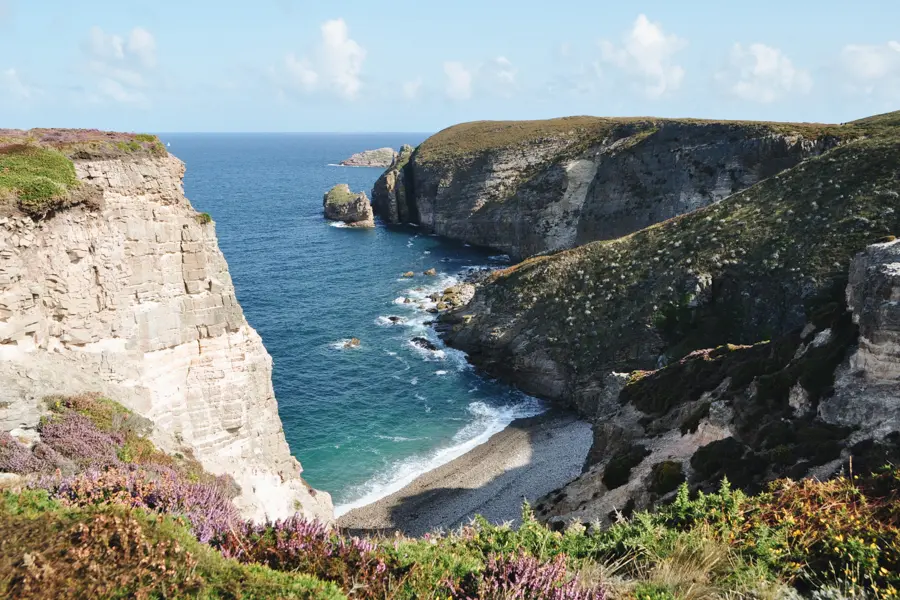 Très belle rando à faire au printemps pour profiter des fleurs. Même dans un crachin un peu opaque la lande du Cap Fréhel est superbe.