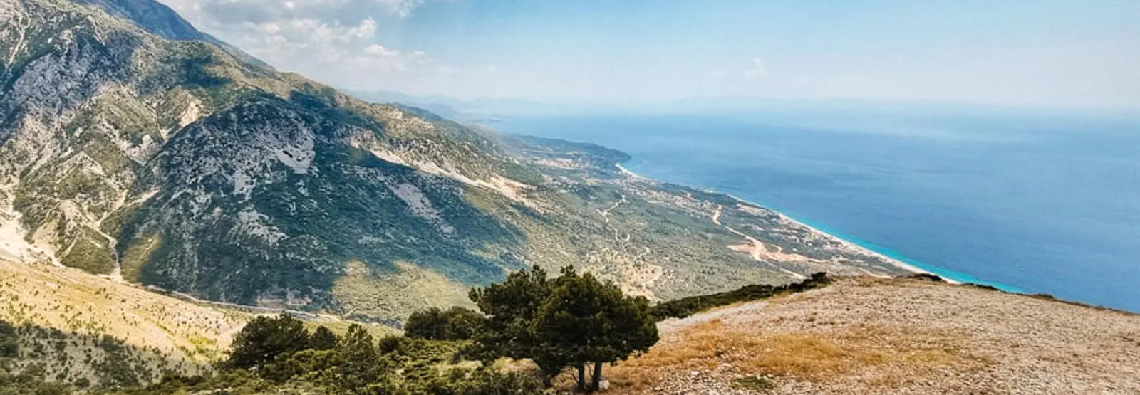 Court transfert vers un col pour débuter la randonnée. Celle-ci suit tout d'abord une ligne de crêtes sur les pentes du mont Cika à travers une forêt mixte. De très beaux points de vue se dégagent régulièrement sur la montagne et la mer. Juste en-dessous du sommet de Qore vous atteignez la "Selle de Dhjopurit", beau plateau s'ouvrant sur la mer. De retour au col, possibilité de déjeuner dans un restaurant panoramique.