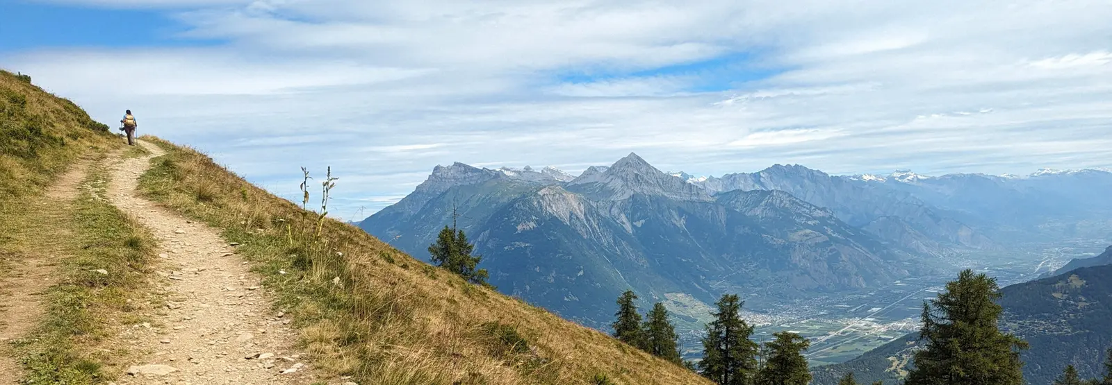 Traversée des alpages de Bovine par un sentier en balcon surplombant la vallée du Rhône ou bien variante possible plus " haute montagne " par la Fenêtre d'Arpette. Descente sur Champex.