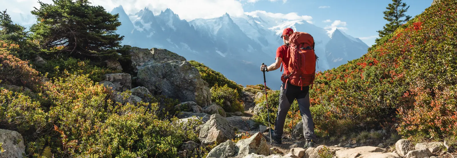 Chaussures montantes de montagne, guêtres et bâtons de marche sont indispensables. Soyez prêt !