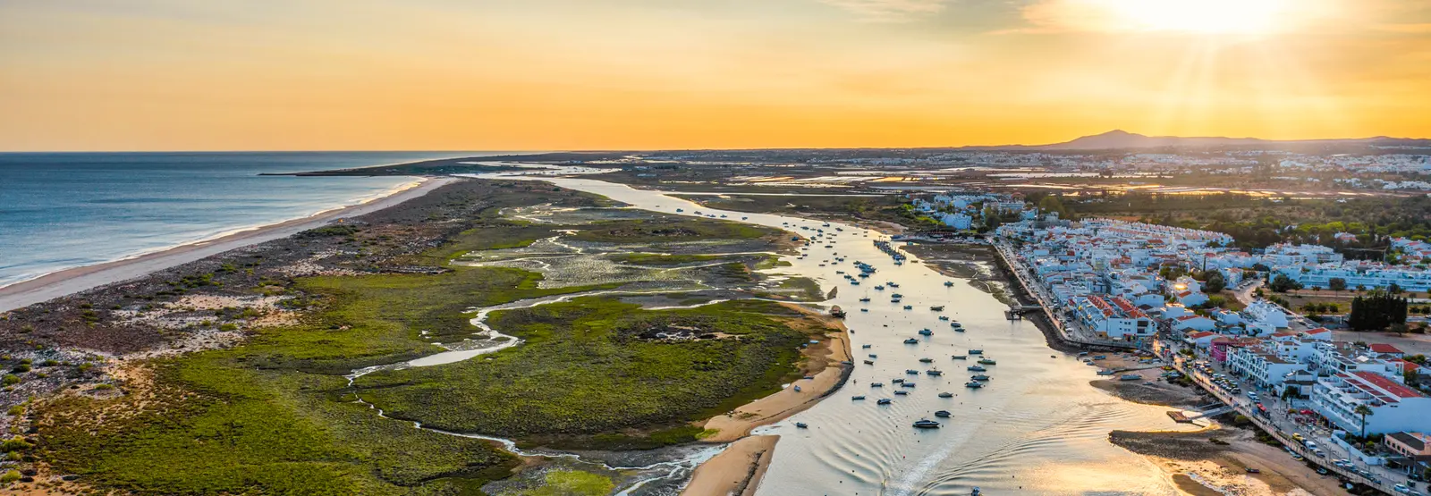 Zone humide internationalement reconnue, la Ria Formosa est un labyrinthe de canaux, d'îles, de marécages et de bancs de sable, qui s'étend sur 60 kms du littoral de l'Algarve, entre les plages de Garrão et de Manta Rota.