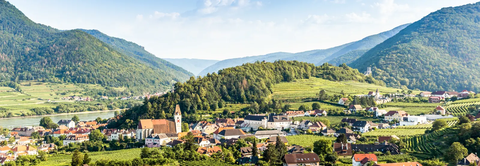 La vallée de Wachau, classée au patrimoine l'UNESCO, vous offre un décor plaisant avec ses vignobles et son patrimoine architectural avant de rejoindre la capitale autrichienne, Vienne.