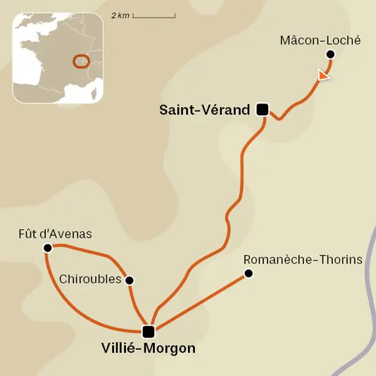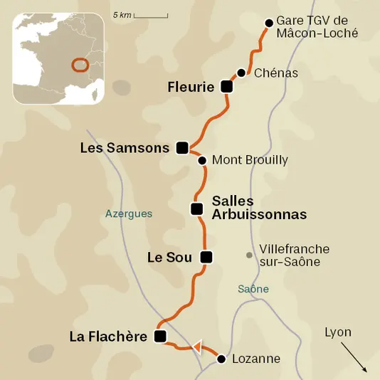 Le Beaujolais, au nord de Lyon, est une région plus vallonnée que sa grande sœur bourguignonne. Ici, vous passez très rapidement des vignes aux forêts de feuillus puis de conifères. Les panoramas dégagés s'ouvrent sur les monts du Lyonnais et la vallée de la Saône. Les circuits empruntent des parcours en crêtes et des chemins de vignes à travers les Crus réputés : Morgon, Chiroubles, Brouilly, Fleurie, Moulin-à-Vent.... C’est un territoire vivant, marqué par la culture du vin, mais aussi par une ruralité active. L'accueil et la convivialité sont les atouts que font ressortir les randonneurs qui ont arpenté ce territoire.