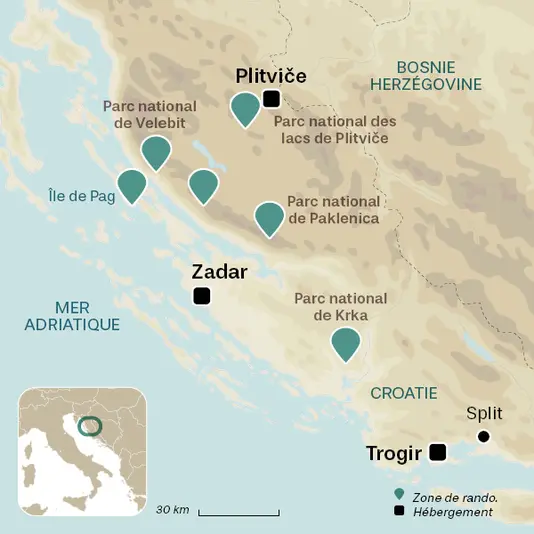 La Croatie offre de magnifiques randonnées pour découvrir son patrimoine culturel, la beauté de la Dalmatie avec ses nombreuses îles et les parcs naturels regorgeant d’une faune et d’une flore incroyable.