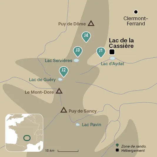 Au cœur du Massif central, dans le Parc Naturel Régional des Volcans d’Auvergne, les randonneurs découvriront la Chaîne des Puys. L'Auvergne est un territoire de randonnée, vous irez d'expériences en découvertes pendant votre séjour dans la Chaîne des Puys. À pied, à vélo, avec un âne ou en raquettes, chacun sera comblé par une nature et un patrimoine exceptionnels.