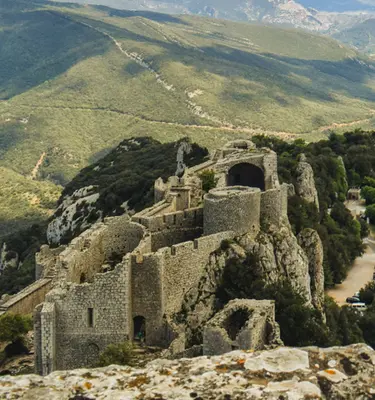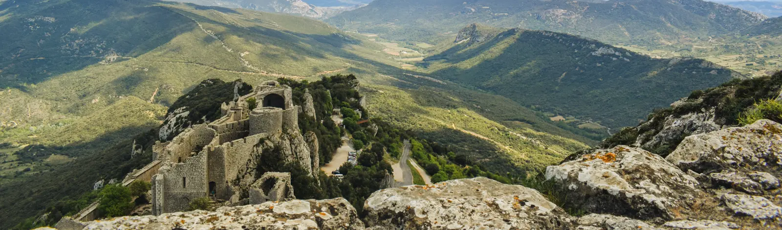 Aux marches de la Catalogne et de l'Occitanie, entre les Corbières et l'Ariège, une succession de sentiers mèneront les randonneurs aux surprenants châteaux cathares : Quéribus, Peyrepertuse, Puylaurens, Puivert et Montségur...