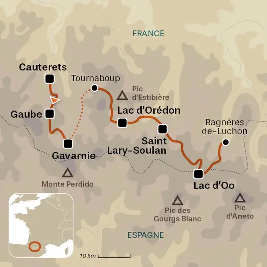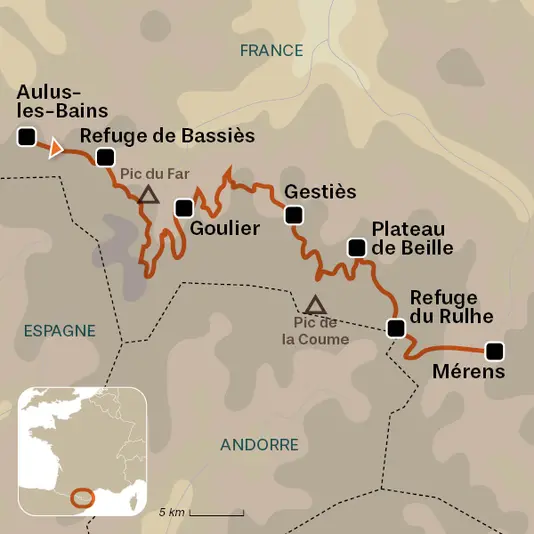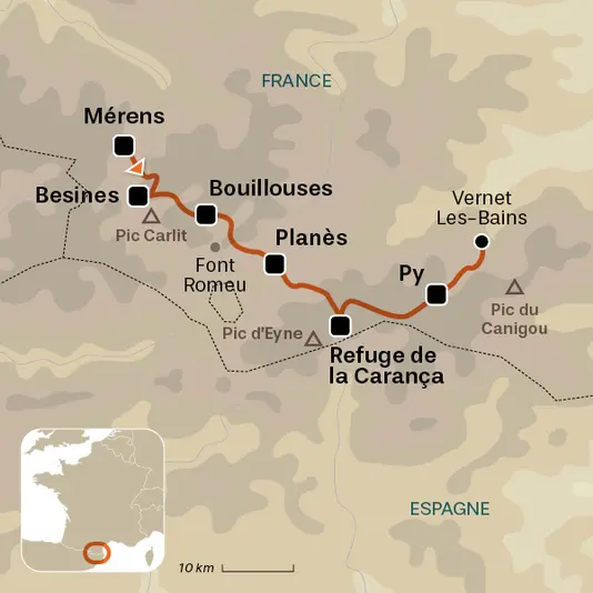 Du verdoyant pays Basque à la garrigue méditerranéenne en passant par la vallée d’Aspe, le Parc National des Pyrénées, le Néouvielle, la Haute Ariège et les hauts plateaux du Capcir et de la Cerdagne, le GR10 est une succession de sites exceptionnels, ainsi qu'une flore et une faune encore bien préservée. Grâce à notre expertise de la randonnée liberté, nous avons découpé cette aventure en 8 tronçons pouvant s’enchaîner, avec des étapes en village ou en refuge de montagne. Notre formule sac transporté vous permet une traversée des Pyrénées basques, Centrales et Orientales en toute légèreté.
