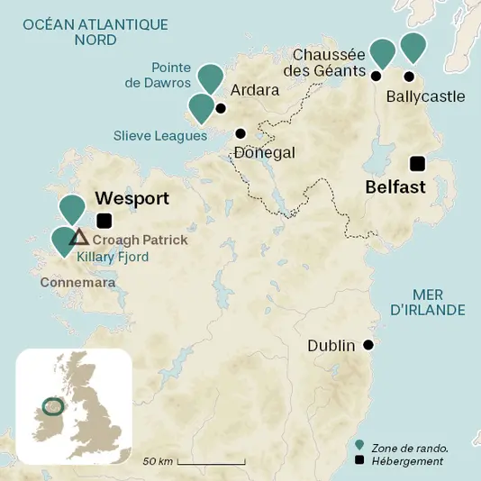 Le Royaume-Uni regorge de paysages splendides et d’une nature exceptionnelle à découvrir à pied ou à vélo. L'Écosse et les Highlands séduiront les amoureux de paysages sauvages et mystérieux. L’Irlande du Nord offre de somptueuses randonnées face à l’océan qui mèneront le randonneur jusqu’aux magnifiques orgues basaltiques de La Chaussée des Géants, inscrites au patrimoine mondial de l’Unesco, en passant par la découverte de l’île de Rathlin, de la région de Ballycastle et de Belfast.